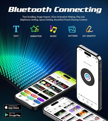 2.[Умное управление APP]Соедините светодиодную матрицу через APP, вы можете самостоятельно проектировать текст, узоры, анимации в соответствии с вашими собственными потребностями и сценами,и вы также можете настроить яркость и скорость, чтобы полностью удовлетворить ваши потребности.